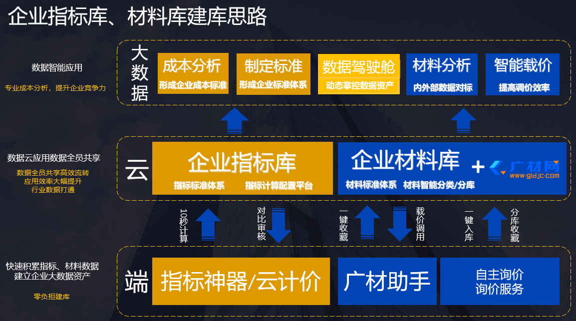 企业价格库通过批量收藏、一键收藏已完工程人材机价格,可以帮助企业快速汇总企业材料数据资产,快速完成建库