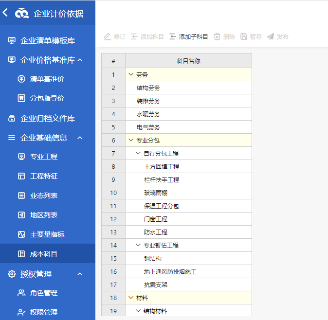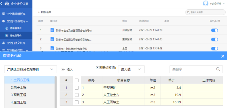 4、企业分包数据统一管控应用难,企业定额、分包指导价数据统一管控应用难