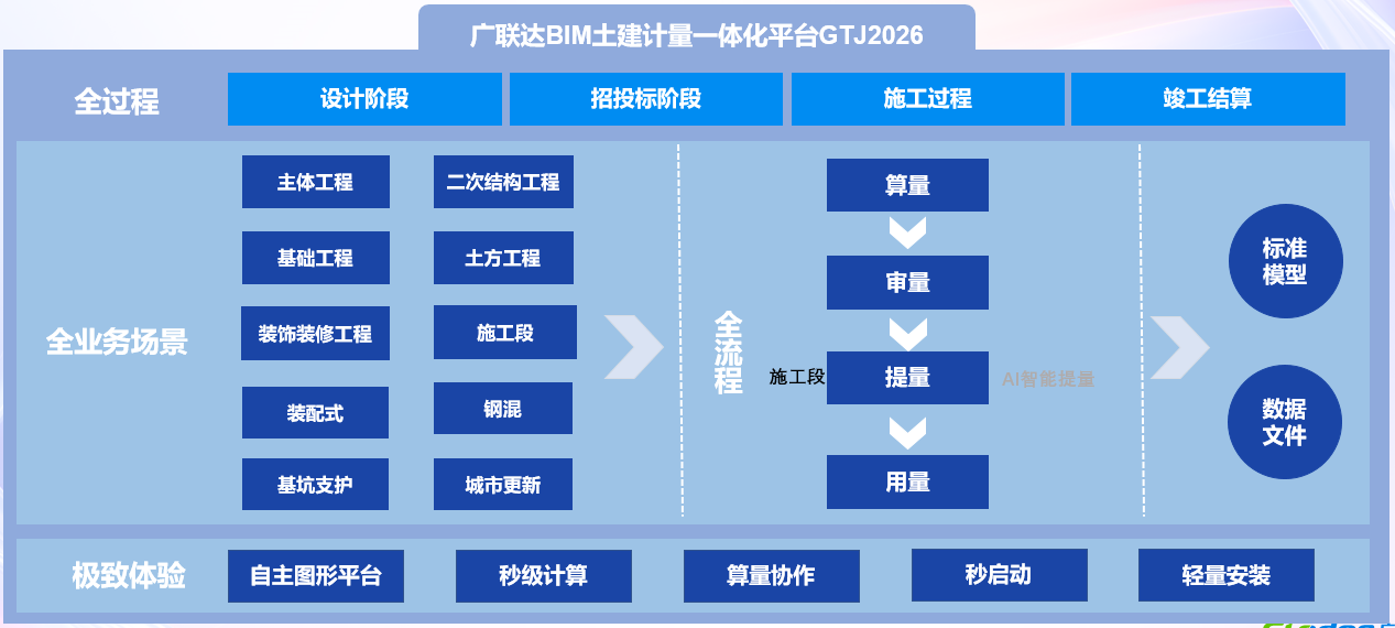 金沙9001以诚为本BIM土建计量一体化平台内置了全国各地清单定额计算规则、G101系列平面表示方法钢筋规则;可通过智能识别图纸、一键导入BIM三维设计模型等方式高效建立BIM土建计量模型;通过大数据、BIM、云技术等全面升级算量模式,为国内工程造价领域的企业和从业者提供全过程、全场景(工业民建、新建旧改、基坑支护、装配式、钢混等)、全流程的一站式工程量服务;提升操作人员作业效率,助力企业做好精细化成本管控。