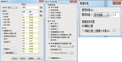 07 桩号、节点和管道标高可定义管道桩号,并对管道桩号进行自动标注和点选标注;可设置节点标高和管道标高。 |