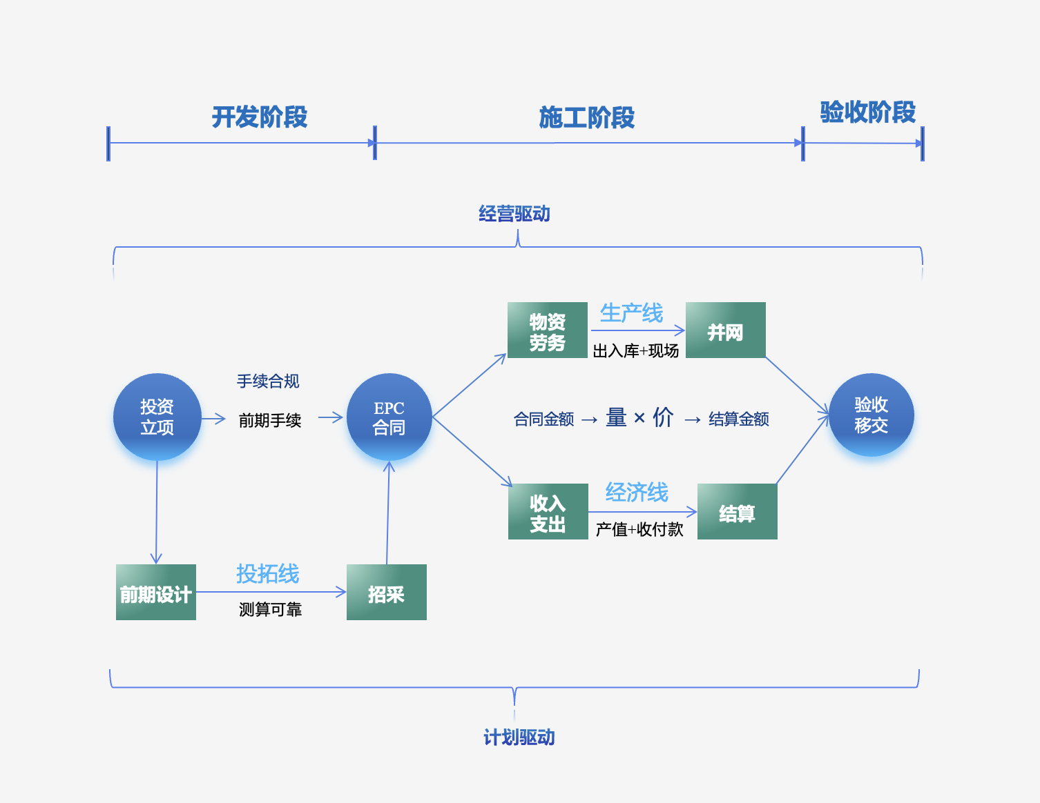 面向新能源行业,以 “量控生产、价控经济”为 理念,打造投拓线、经济线、生产线三线协同管理,助力企业投资开发高效落地、建设过程轻松掌控、利润目标精准达成。