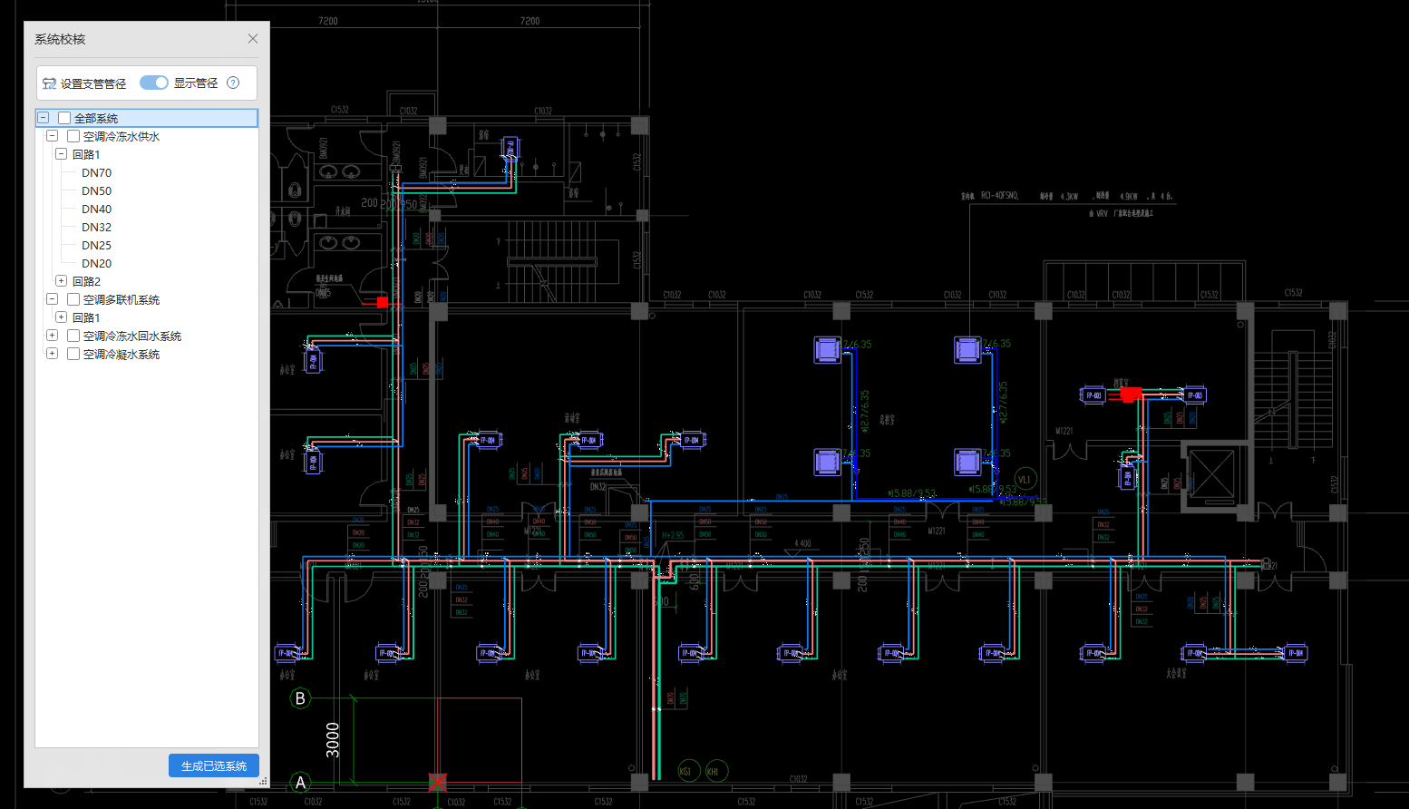 可以一次性将同一系统风管管道自动识别完成