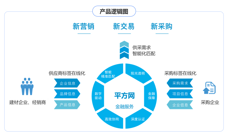 从信息服务到采供撮合业务的重要跨越。深入洞察建材市场,为建材企业精心打造涵盖市场洞察、营销推广、商机撮合等环节的全链路营销解决方案。