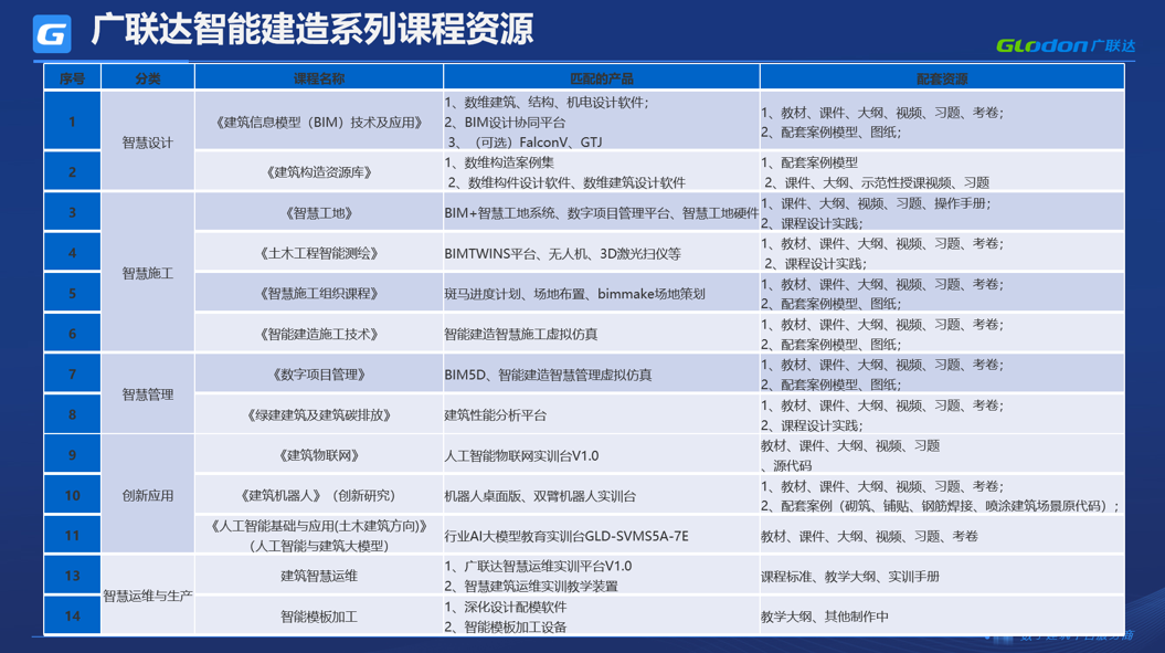 这些课程都是和国内知名院校知名专家一起精心打造,是产教融合的合作典范。课程具有完整的理论体系,同时让学生掌握行业最新技术和岗位能力。我们还将持续完善智能建造专业课程体系,也欢迎各位专家一起合作,为智能建造专业建设贡献一份的力量。