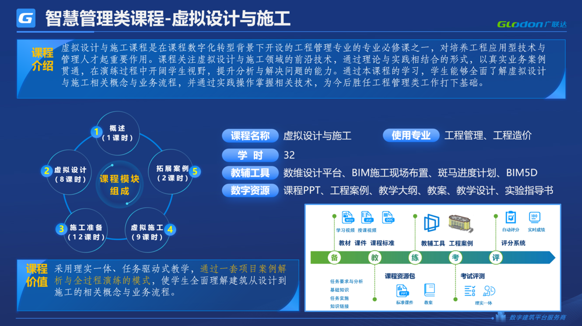 《数字项目管理》课程,让学生了解建设工程全生命周期管理理论的基础上,掌握应用行业数字项目管理平台进行实际项目管理的流程和方法,做到学以致用。