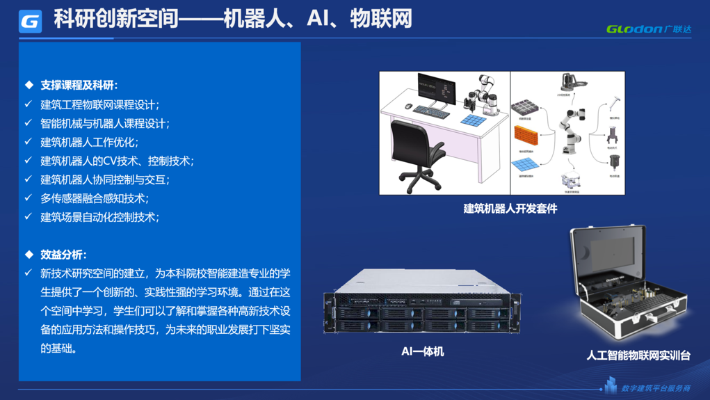 科研创新空间建设可覆盖AI、物联网、机器人及基于BIM的管理平台的开发,助力学生创新实践。